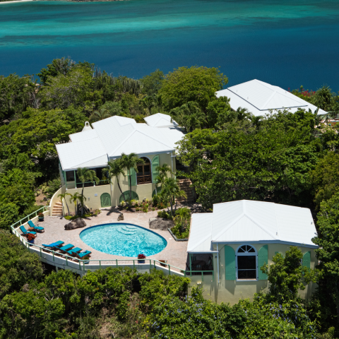 Nestled in the prestigious Peterborg Estate of St. Thomas, USVI, Magens Hideaway offers luxurious vacation rentals with breathtaking views of Magens Bay Beach and the British Virgin Islands. This exquisite private vacation home comprises three interconnected villas: the Great House, the Master Suite, and a Guest House, providing ample space and privacy for large families and groups seeking family-friendly vacation rentals.